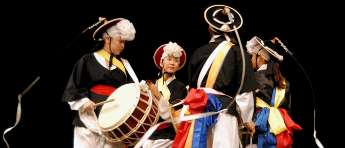 Das in Europa einzigartige Perkussions– und Tanzensemble für traditionelle koreanische Performance-Kunst spielt SamulNori, eine modernisierte Form der tradi-tionellen koreanischen Perkussionsmusik, gespielt auf Metallgongs, Fass– und Sanduhrtrommeln.