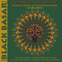 Der Black Basar bricht die Zelte ab und schließt in dieser Nacht letztmalig die Pforten. Doch das Joliba Team wird weiterhin mit Kultur- und Bildungskonzepten in Berlin präsent sein. Zum Beispiel mit Ausstellungen, Lesungen und Filmvorführungen in der Galerie JolibaZWO in der Manteuffelstr. 97 in Kreuzberg. Der Black Bazar war mit dem Ziel angetreten, Schwarzen Künstlern und Künstlerinnen eine Plattform zu verschaffen, auf der sie Proben ihrer Kunst zeigen konnten. Die Idee kam von Elisabeth Argilagos und wurde 2005 erstmalig von Elisabeth Argilagos und Katharina Oguntoye umgesetzt. Das Ziel des Black Basar Konzept ist mehr als erreicht. In Berlin gibt es viele Orte und Formate, in denen Schwarze Kulturen, Künstler_innen und Kunst gezeigt werden. Sie können das ganze Jahr über Events und Veranstaltungsreihen besuchen, so in der Werkstatt der Kulturen, in der Galerie Listros, von AfrikAvenir, der Theatergruppe Label Noir, im Afrikahaus in Moabit und im Afrika Medien Zentrum im Wedding, in der Galerie Savvig und im Ballhaus Naunystraße. Kurz, unsere kühnsten Träume haben sich erfüllt und so verabschiedet sich das Team Joliba von dem Format Black Bazar noch einmal mit Kinderprogramm, Ausstellung, Film und Performance und einem Konzert. Mit dabei sind Comedie und Afro Pop von FOULAA SYSTEM, BRANWEN OKPAKOS Dokumentation THE EDUCATION OF AUMO OBAMA und TAYOs große Stimme celebriert Soul&Funk. Mit Soulfood, Café-Bar und Rickys Bücherstand feiern auf dem Black Basar 2014 einander und mit einander, was erreicht wurde. Ja, wir sind hier - Schwarz, mutig und stark! |