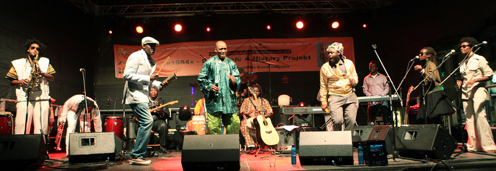 Als Highlight des Black History Month 2014 spielen Musiker_innen des Music-History-Projekts "1884" und zitieren den Sound international bekannter afrikanischer und afro-diasporischer Musiker_innen der 70er und 80er Jahre, wie Fela Anikolapo Kuti und Bob Marley, die sich mit Fragen von (Post)Kolonialismus, Unabhängigkeit und Selbstbestimmung auseinander setzen, sowie den Sound der südafrikanischen Anti-Apartheid Bewegung. Musikalisch bedient sich "1884" bei Afro-Beat, Highlife, R&B, M`Balax, Rumba, Souk, Jazz, Hiphop, Salsa, ...