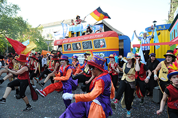 76 Gruppen, circa 4.400 Teilnehmer, 49 motorisierte Wagen vereint in Karnevalskunst: Musik, Tanz, Akrobatik, Performance, bildende Künste in einem Umzug auf der größten Bühne der Stadt – der Straße. Kostüme, Stelzen, Trommeln, Riesen und Zwerge, Vehikel und Trucks – neun Stunden lang in Kreuzberg.