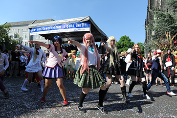 "Cosplay rockt Berlin! Wie schon im letzten Jahr möchten wir den Besuchern die japanische Popkultur näherbringen. Wir werden viele verschiedene Cosplay-Kostüme vorstellen. Cosplay ist ein japanischer Verkleidungstrend, der in den 90er Jahren auch nach Europa kam. Dabei stellt der Teilnehmer einen Charakter aus Manga, Anime, Computerspiel oder Film durch Kostüm und Verhalten möglichst originalgetreu dar. Dazu werden wir J-Rock- und J-Pop-Musik spielen."