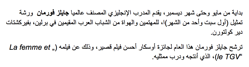 Nach einem erfolgreichen Jahr voller Veranstaltungen und Aktivitäten sind die Workshops-Reihen von LA SAISON ARABE - Fan Café, Fadfadah, Schauspiel-Workshops - nun abgeschlossen.