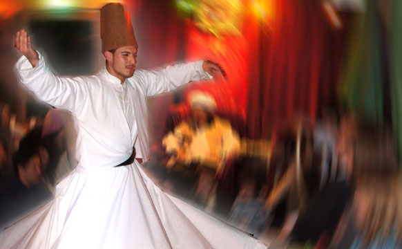 Eine Kostprobe mystischer Glückseligkeit und Unendlichkeit im Tanz der drehenden Derwische bietet beispielsweise das Sufi Ensemble Rabbaniyya am Samstagnachmittag.