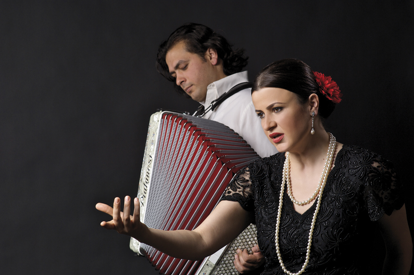 Bucharest Tango Musik aus dem Balkan genießt derzeit eine Popularität, wie man es noch vor einigen Jahren kaum zu hoffen gewagt hätte. Die gebürtige Rumänin Oana Catalina Chitu kam in den neunziger Jahren über Umwege nach Berlin und studierte hier Klavier, Jazz- und Opergesang. Ihre Leidenschaft für klassischen Tango aus Argentinien, den ihr Vater, als sie klein war, stets vor sich hinsummte, gepaart mit traditionellen rumänischen Liedern, die zumeist von der Liebe handeln, setzt Oana Chitu mit einem großen Feingefühl für die Balance zwischen Authentizität und Modernität um. „Tangos á la Romanesque“, wie man ihre Lieder auch bezeichnen kann, erinnern an das alte Bukarest, das in früheren Zeiten oftmals mit Paris verglichen wurde. Bucharest Tango tragen dazu bei, dieses Flair vergangener Zeiten in das Hier und Jetzt zurückzuholen. Oana Catalina Chitu – Gesang / Dejan Jovanovic – Akkordeon Anton Slavic – Violine / Valeriu Cascaval – Cymbalon / Alexej Wagner – Gitarre / Alexander Franz – Kontrabass / Dimitris Christides – Perkussion / Vladimir Karparov – Saxophon |