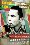 Arenor Anukus Social Sunday Berlin 2012Die Musik ist ein Heilmittel auf dem Weg in eine gerechtere Welt Pünktlich zum 1. Advent will der Social Sunday Menschlichkeit und Miteinander fördern. In gemütlicher Atmosphäre, mit und ohne Kinder lädt der Musiker Arenor Anuku dazu ein, Musik und Film zu genießen, Künstler kennen zu lernen und Kontakte zu knüpfen. Programm • Film Premiere "Hier bei Mir" der Filmemacherin Estelle Beauvais Besetzung Arenor Anuku Trio + Guests Arenor Anuku - vocals, guitar Links www.estelle-beauvais.com I www.dasein-projekt.com